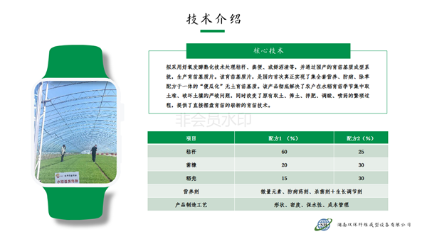 本產(chǎn)品針對(duì)水稻旱育苗大量挖取耕層土,耕層破壞嚴(yán)峻的現(xiàn)實(shí),利用秸稈、蘑菇菌糠、稻殼、沼渣等農(nóng)林廢棄物經(jīng)過(guò)工廠化快速熟化,賦予全套的營(yíng)養(yǎng)、防病、除草配方,制造成新型的嶄新的“無(wú)土育苗基質(zhì)”。